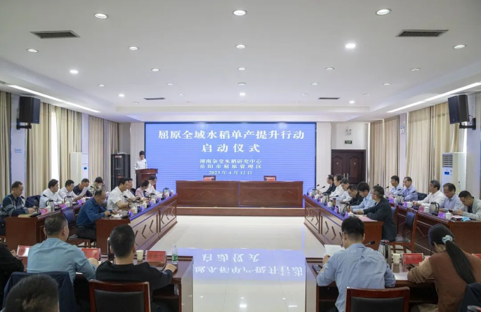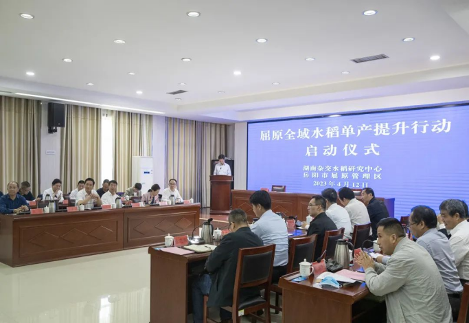 4月12日,岳阳市屈原管理区与湖南省杂交水稻研究中心举行共同推进全域单产提升行动启动仪式,旨在全面优化水稻生产模式,打造全省水稻产业单产提升的样板,推动国内外水稻产业生产技术体系的迭代升级。中国工程院院士、省农科院党委书记柏连阳,省农业农村厅党组成员、副厅长龚昕,省农业科学院党委委员、副院长、湖南杂交水稻研究中心党委书记许靖波,湖南杂交水稻研究中心主任唐文帮,市人大常委会党组成员、副主任张中于,袁隆平创新团队专家代表,区领导向科军、杨林彬、曾兰芝、曹正平、陈学礼出席,区直部门主要负责人、乡镇主要负责人、农业合作社代表等参加。