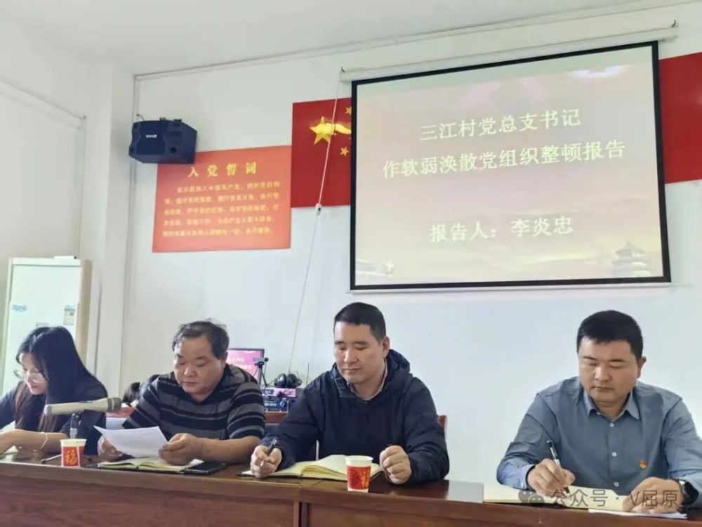 会上,三江村总支书记作了软弱涣散党组织整顿工作报告,驻村第一书记作工作述职。随后,全体与会人员对整顿工作进行了民主测评。