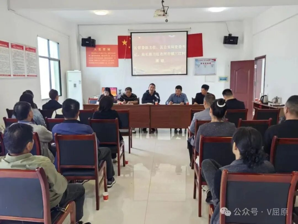 10月15日,区管委会副主任、公安局党委书记、局长陈习红到河市镇三江村调研,并出席软弱涣散党组织民主测评会。河市镇、区退役军人事务局相关负责人参加会议。