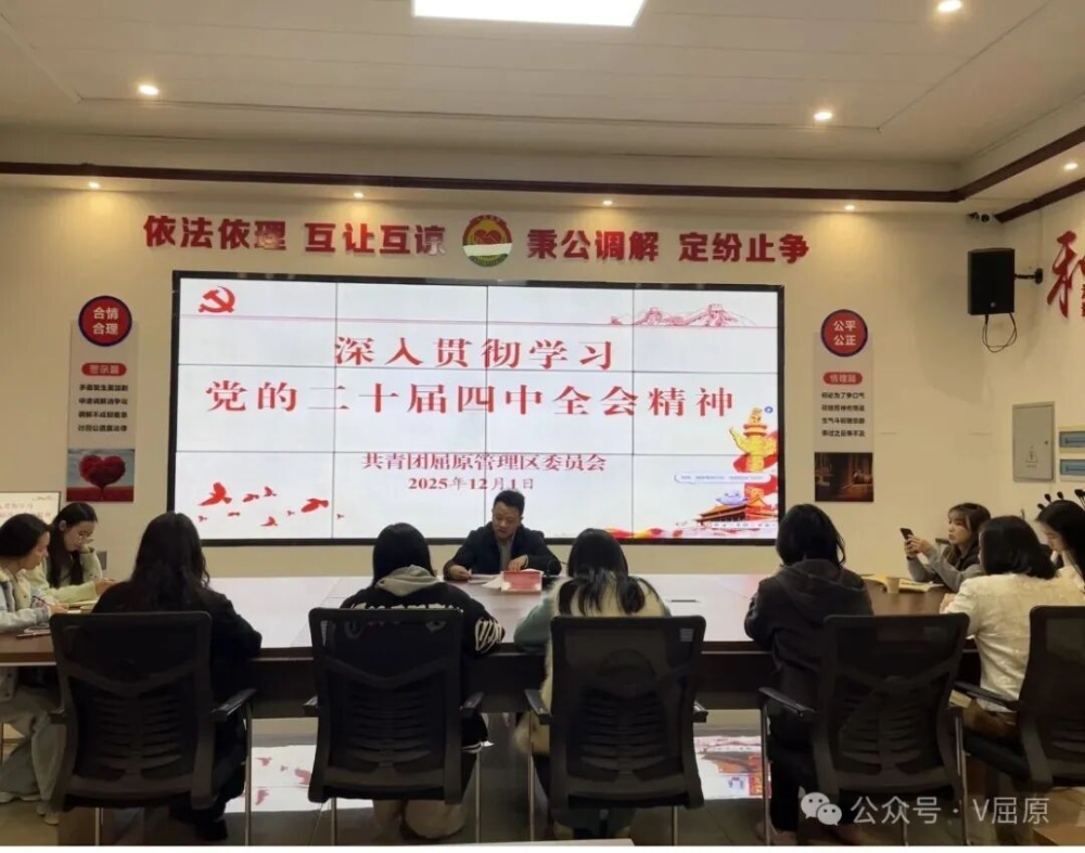 为深入学习宣传贯彻党的二十届四中全会精神,引导广大团员青年把思想和行动统一到党中央决策部署上来,推动全会精神在青年群体中落地生根,近日,共青团屈原管理区委组织全区各乡镇街道团委负责人、各中小学大队辅导员开展党的二十届四中全会精神专题宣讲会。