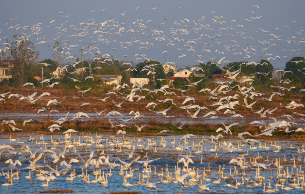 冬日的岳阳,藏着一处 “鸟的天堂、人的乐园”屈原管理区东古湖晨光熹微中,万余西伯利亚小天鹅舒展银白羽翼,掠过如镜湖面,与冬日暖阳、连片稻田、静谧湿地相映成趣,构成一幅灵动绝美的生态画卷。