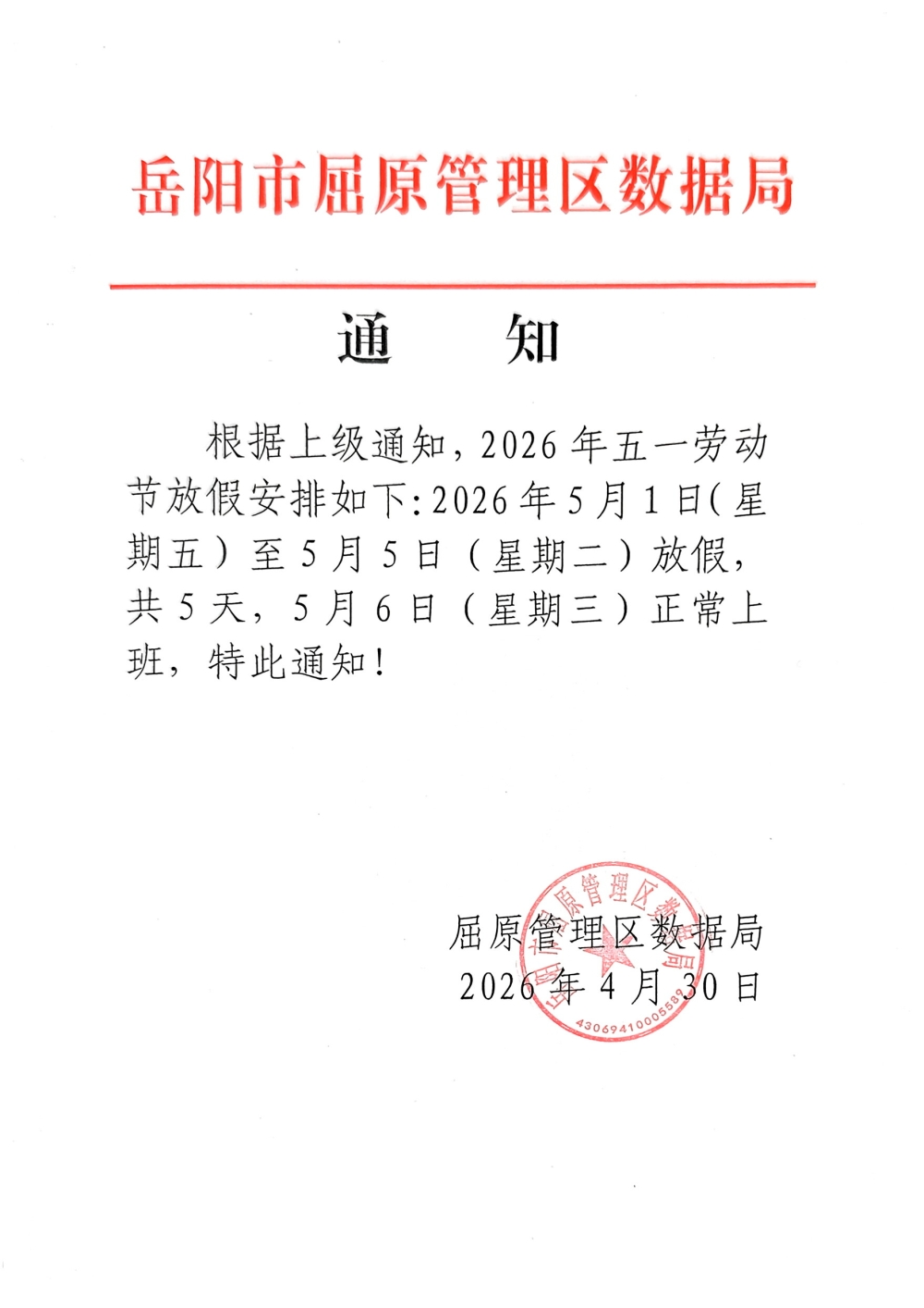 2026年五一劳动节放假通知
