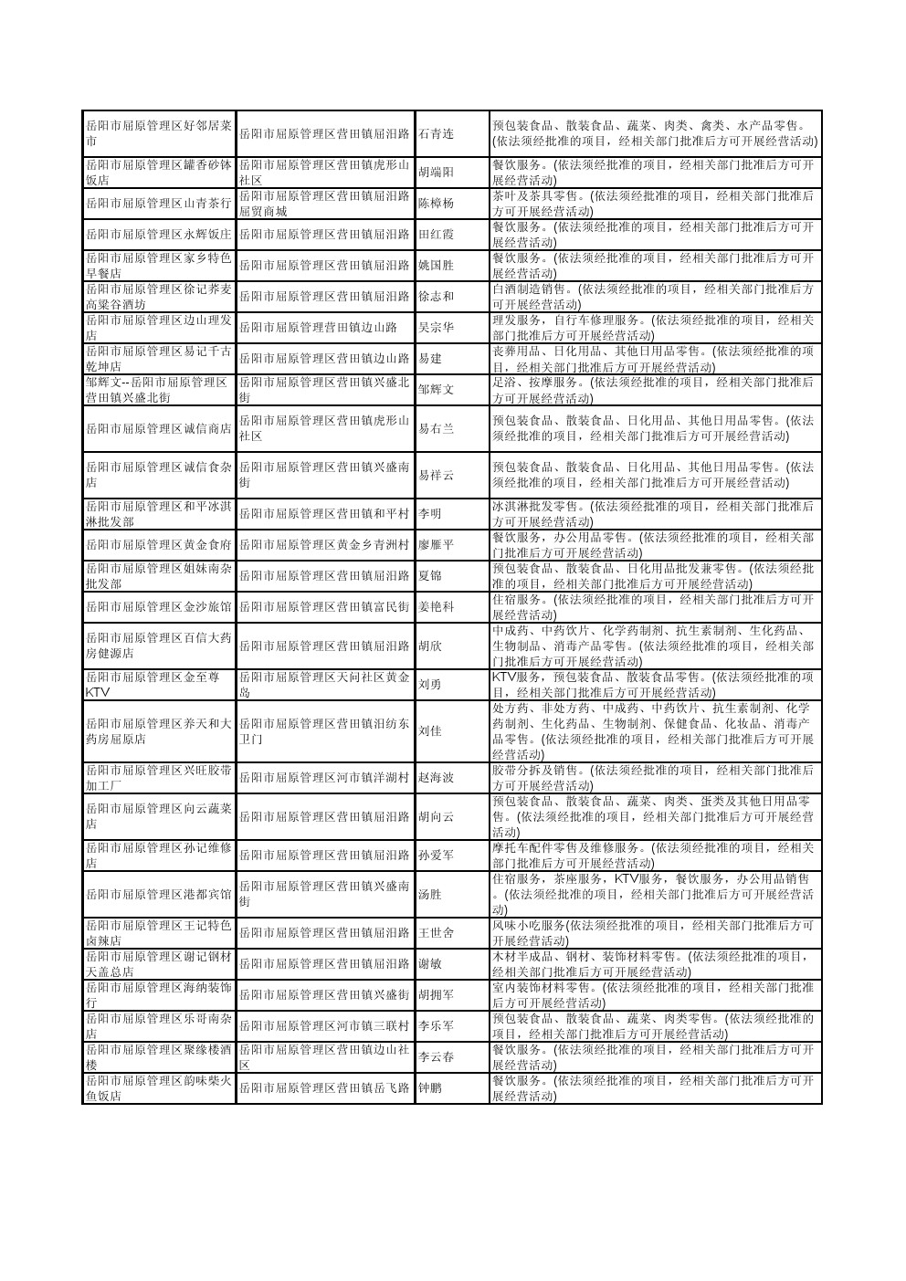 岳阳市工商局屈原分局前置改后置企业登记表(2015年4月7日至5月10日)