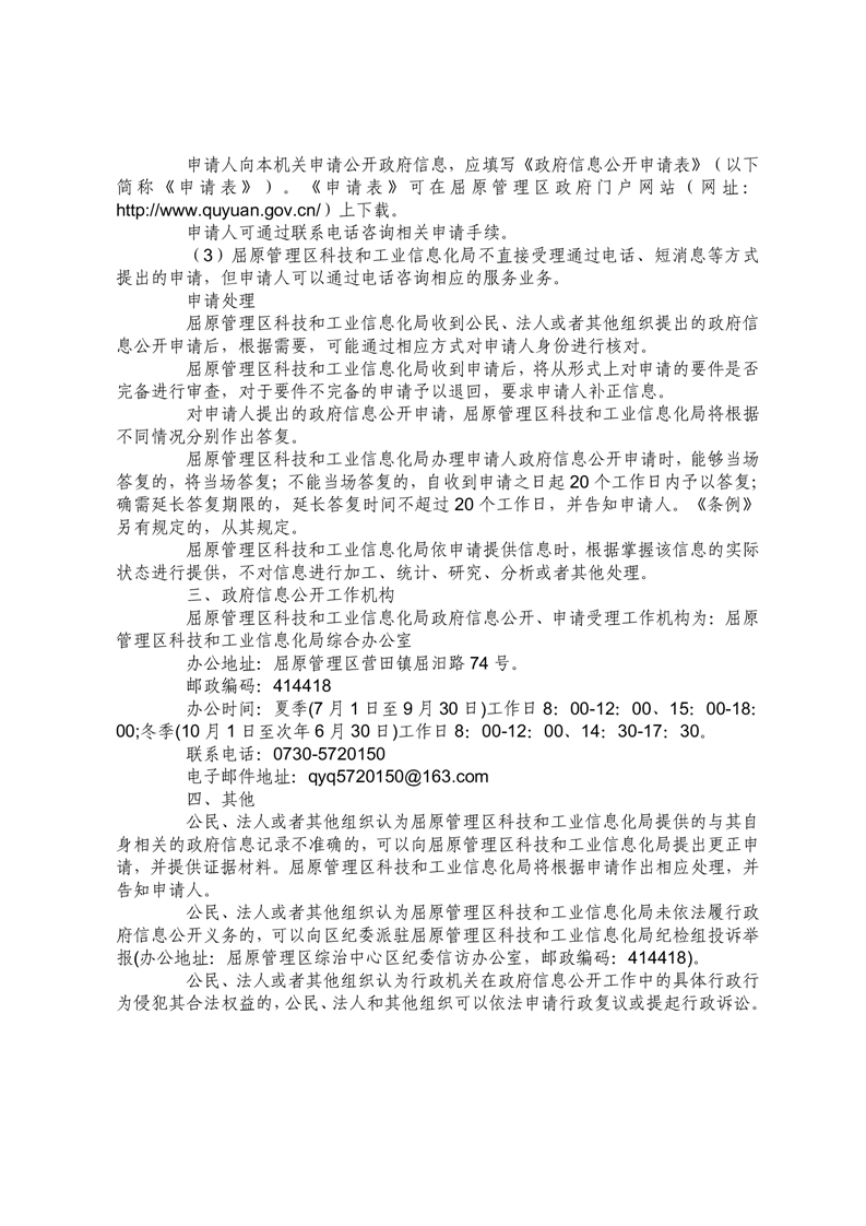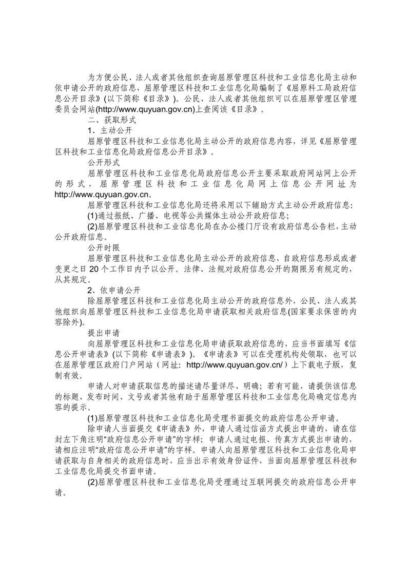 屈原管理区科技和工业信息化局信息公开指南