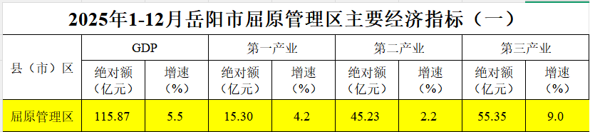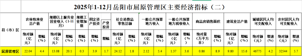 2025年1-12月岳阳市屈原管理区主要经济指标