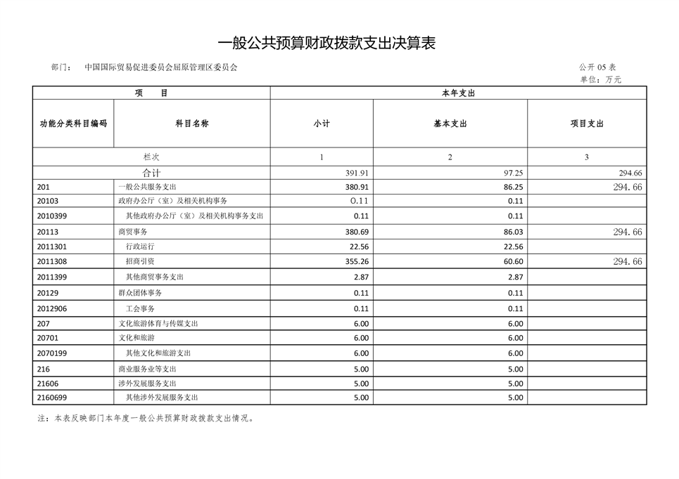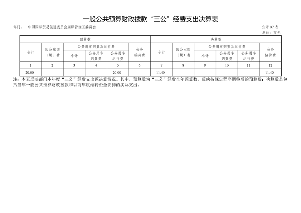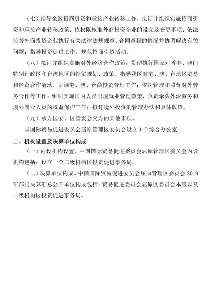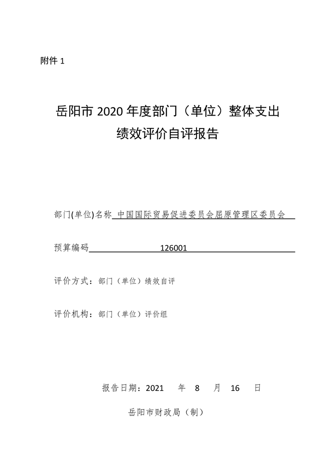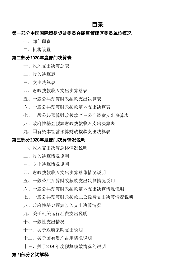 中国国际贸易促进委员会屈原管理区委员2020年度部门决算