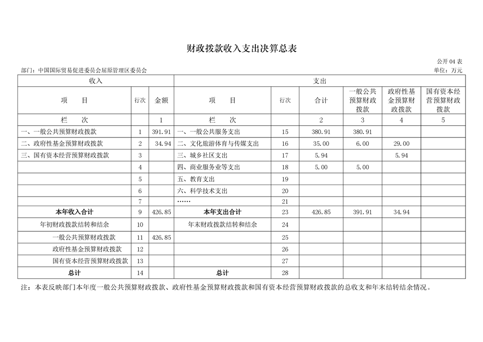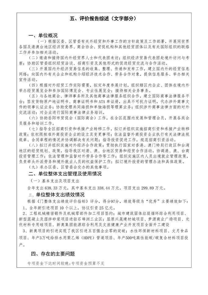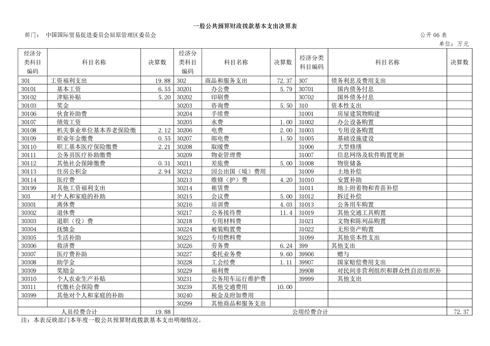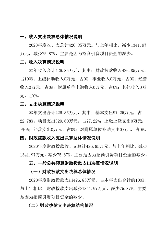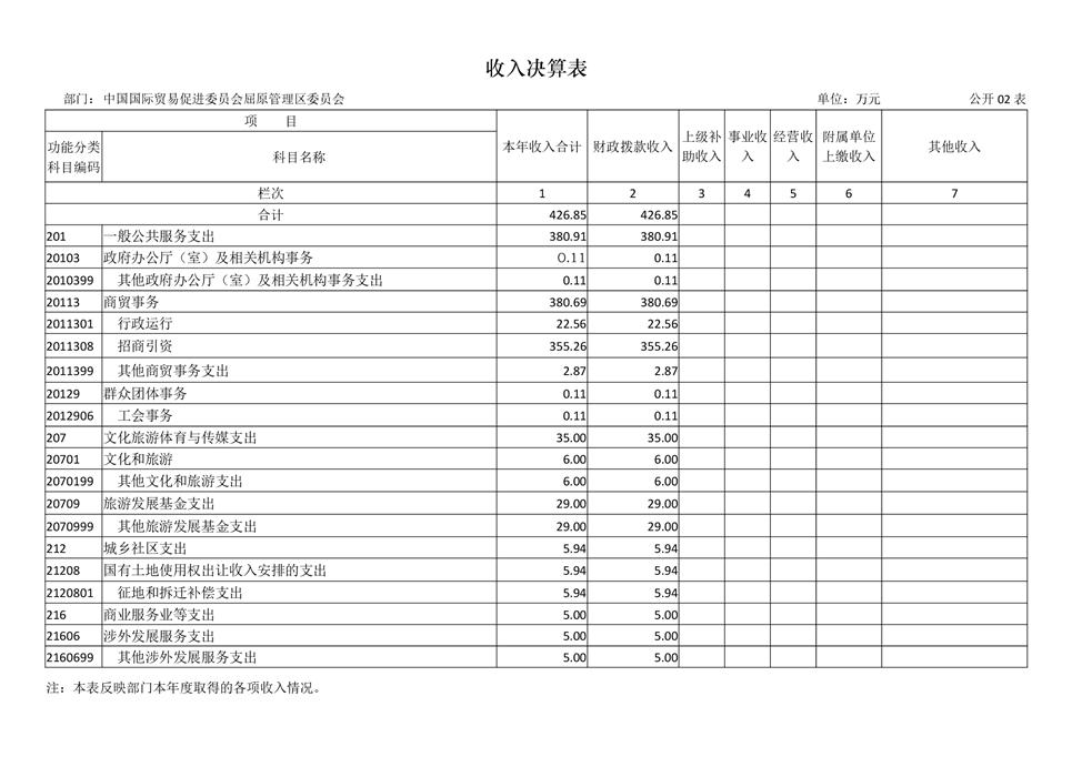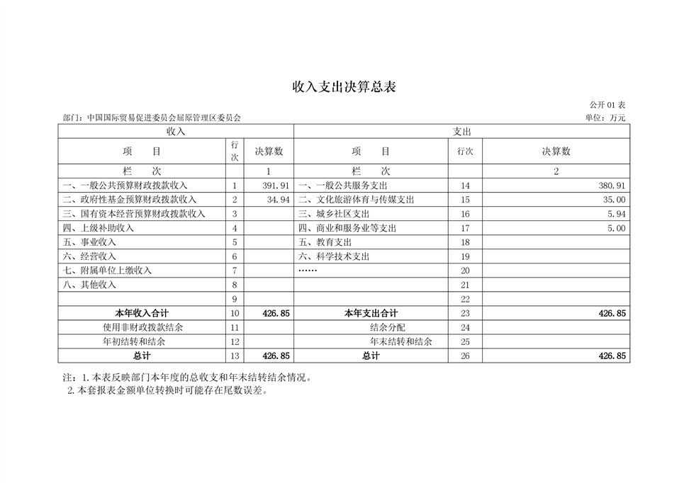 中国国际贸易促进委员会屈原管理区委员2020年度部门决算