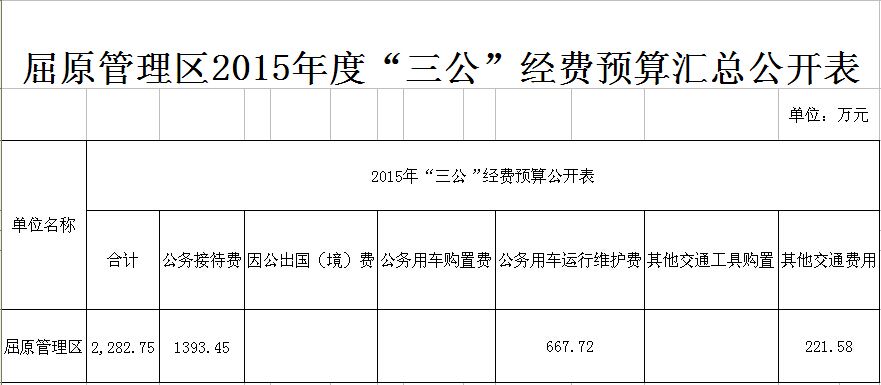 屈原管理区2015年度“三公”经费预算汇总公开表