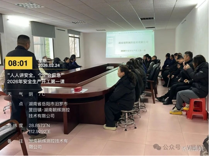 湖南朝辉测控技术有限公司主要负责人向全体职工讲授“开工第一课”,要求全员绷紧安全弦,筑牢思想防线,确保复工安全有序。