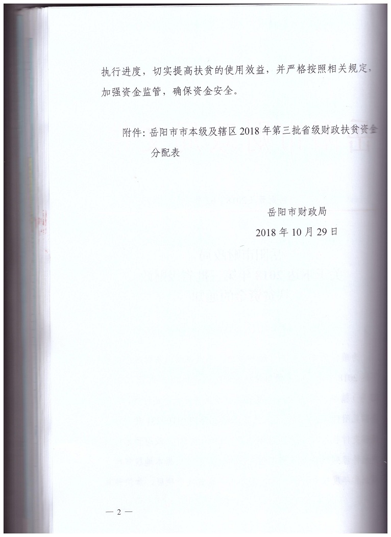 分配结果公开——岳阳市财政局关于下达2018年第三批省级财政扶贫资金的通知