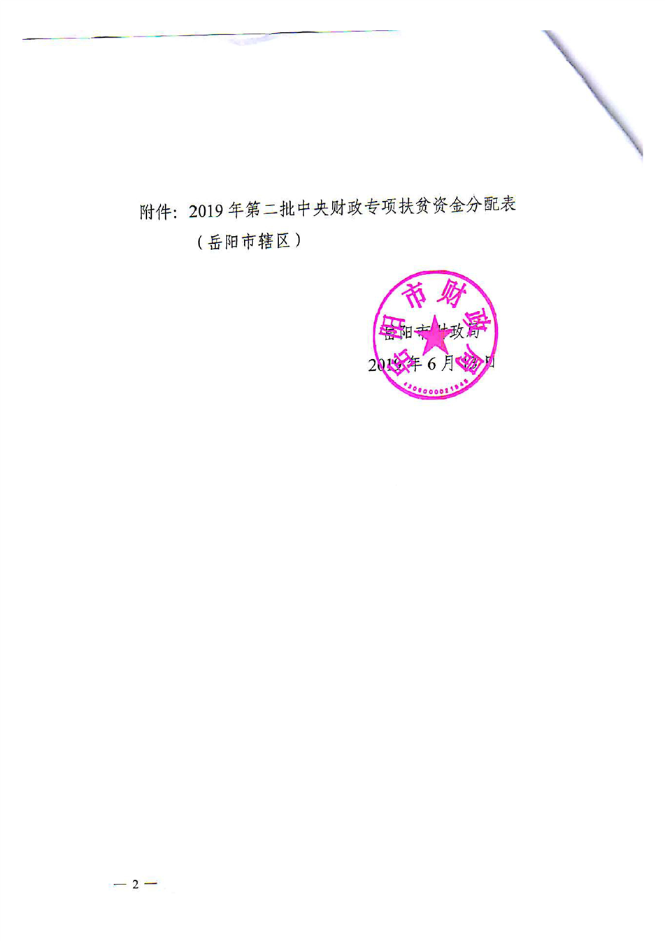 岳阳市财政局关于下达2019年第二批中央财政专项扶贫资金的通知岳财预〔2019]32号