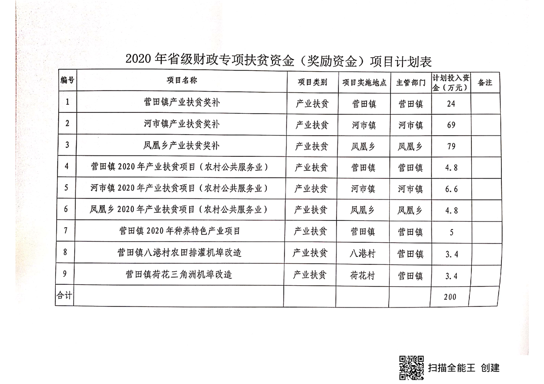 关于下达2020年省级财政专项扶贫资金(奖励资金)实施项目的通知(屈扶办发【2020】15号)