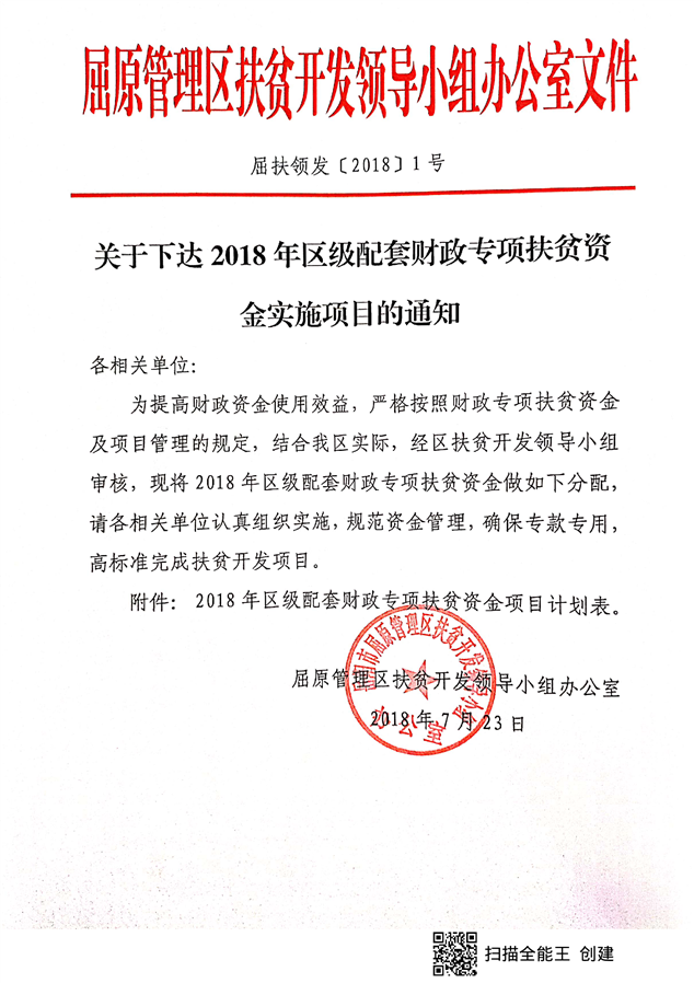 关于下达2018年区级配套财政专项扶贫资金实施项目的通知