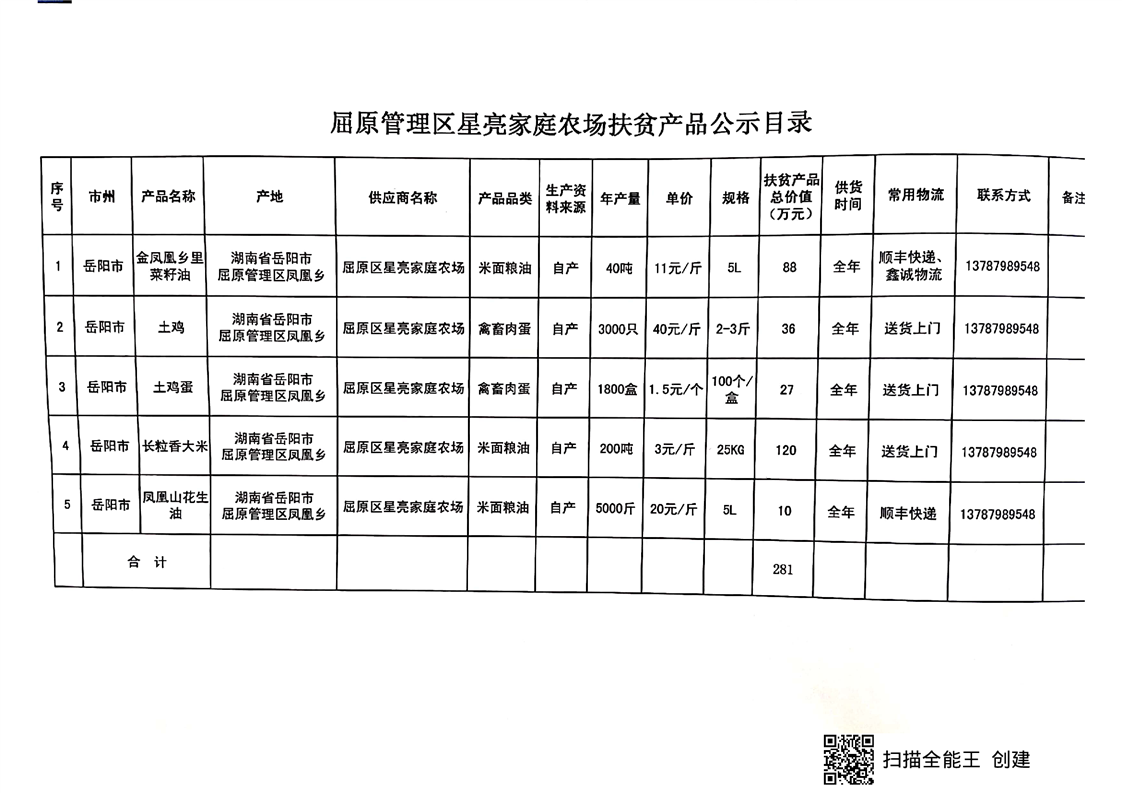 关于对屈原管理区星亮家庭农场扶贫产品认定的公示