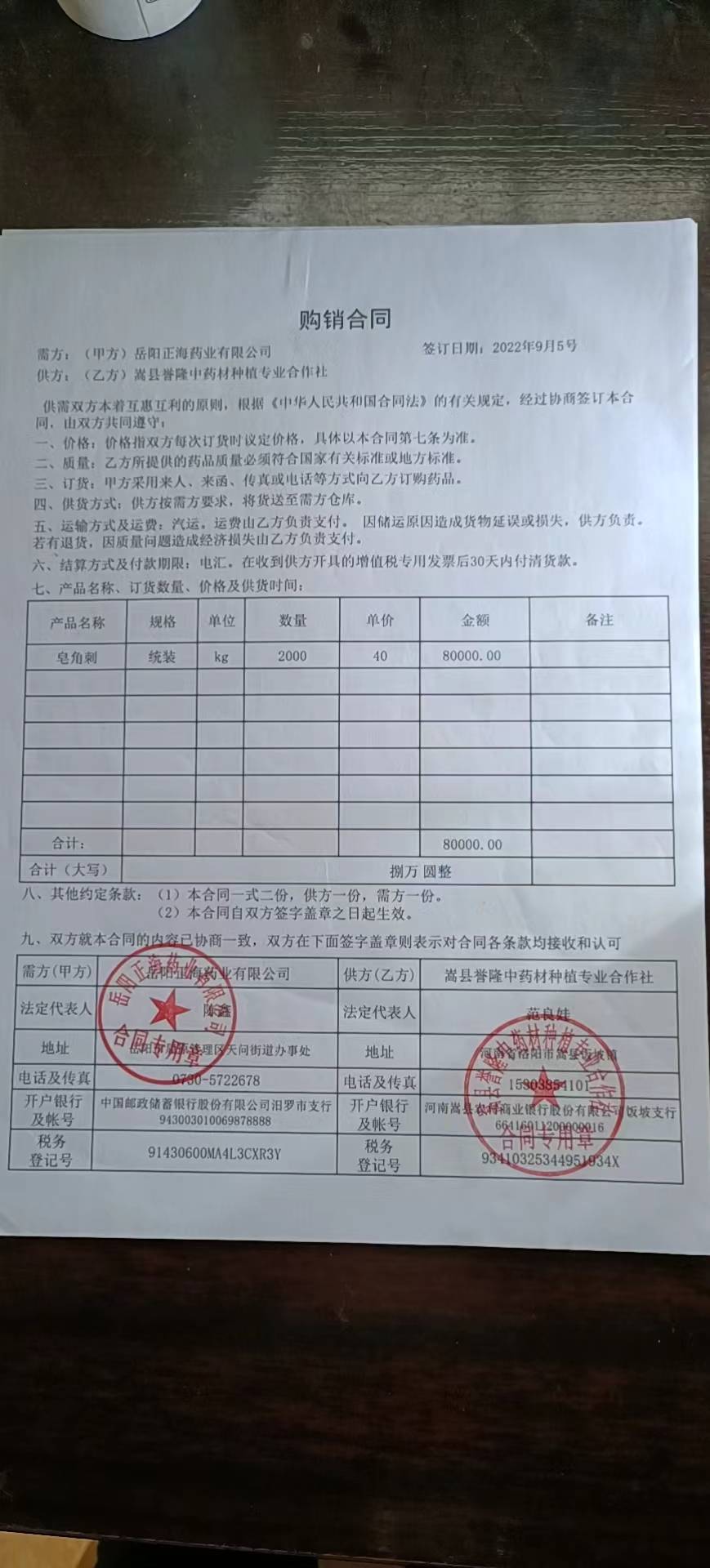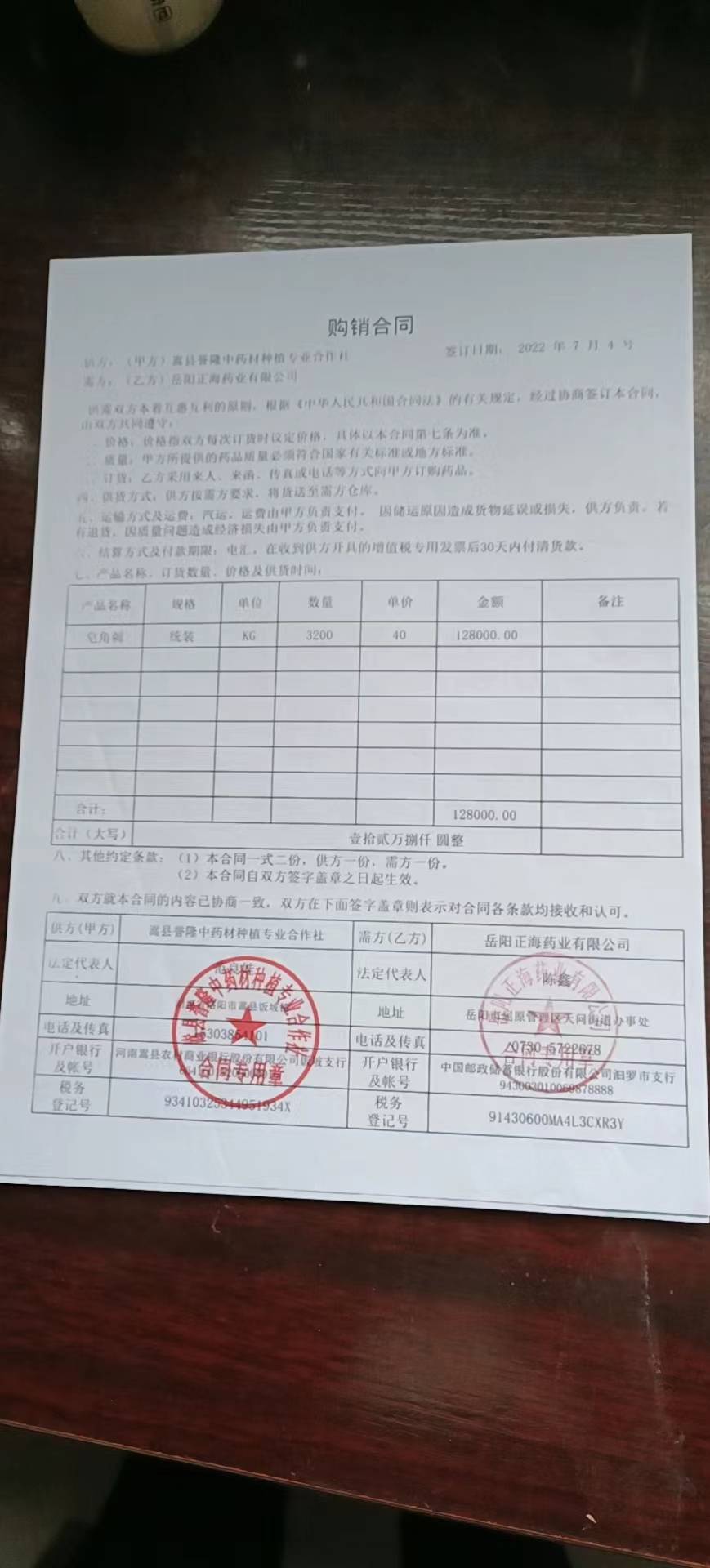 尊敬的岳阳市12345市政热线领导以及工作人员你们好,我是嵩县誉隆中药材种植专业合作社的总经理范良娃,联系方式18037362867 现投诉岳阳正海药业有限公司董事长陈鑫, 联系方式13729393520 投诉原因:因岳阳正海药业有限公司董事长陈鑫自2022年7月至今拖欠我合作社货款共计158000元(壹拾伍万捌仟元整)。 投诉目的:希望通过这个平台帮助我们合作社成员拿回拖欠的货款。 纠纷内容:我们嵩县誉隆中药材种植专业合作社于2022年7月至9月先后两次与岳阳正海药业有限公司签订关于中药材皂角刺的采购合同,合同金额合计208000元整。我们合作社根据对方公司要求已经按时保证质量交货,对方也已经签收,但我们本着长期友好合作的目的,一直等待着对方结货款,期间打过两万多的货款,但是还有158000元的货款一直拖欠,至今不给结,而且岳阳正海药业有限公司董事长陈鑫一直联系不上,开始耍赖。 年关将至,我们农民合作社成员,一年的血汗钱都在这批货款里,希望政府领导以及工作人员,为我们讨回货款。我在这里代表全体社员表示感谢。 |