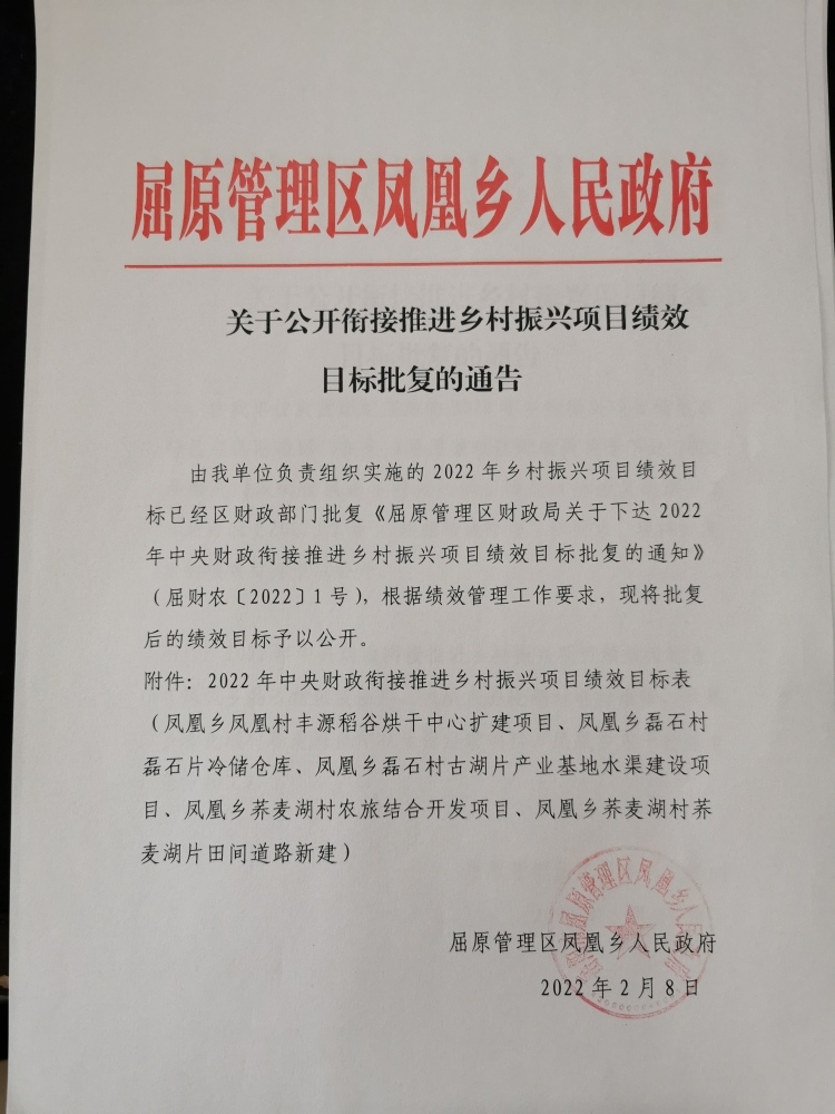 关于公开乡村振兴项目绩效目标批复的通告(中央财政 屈振局1号)